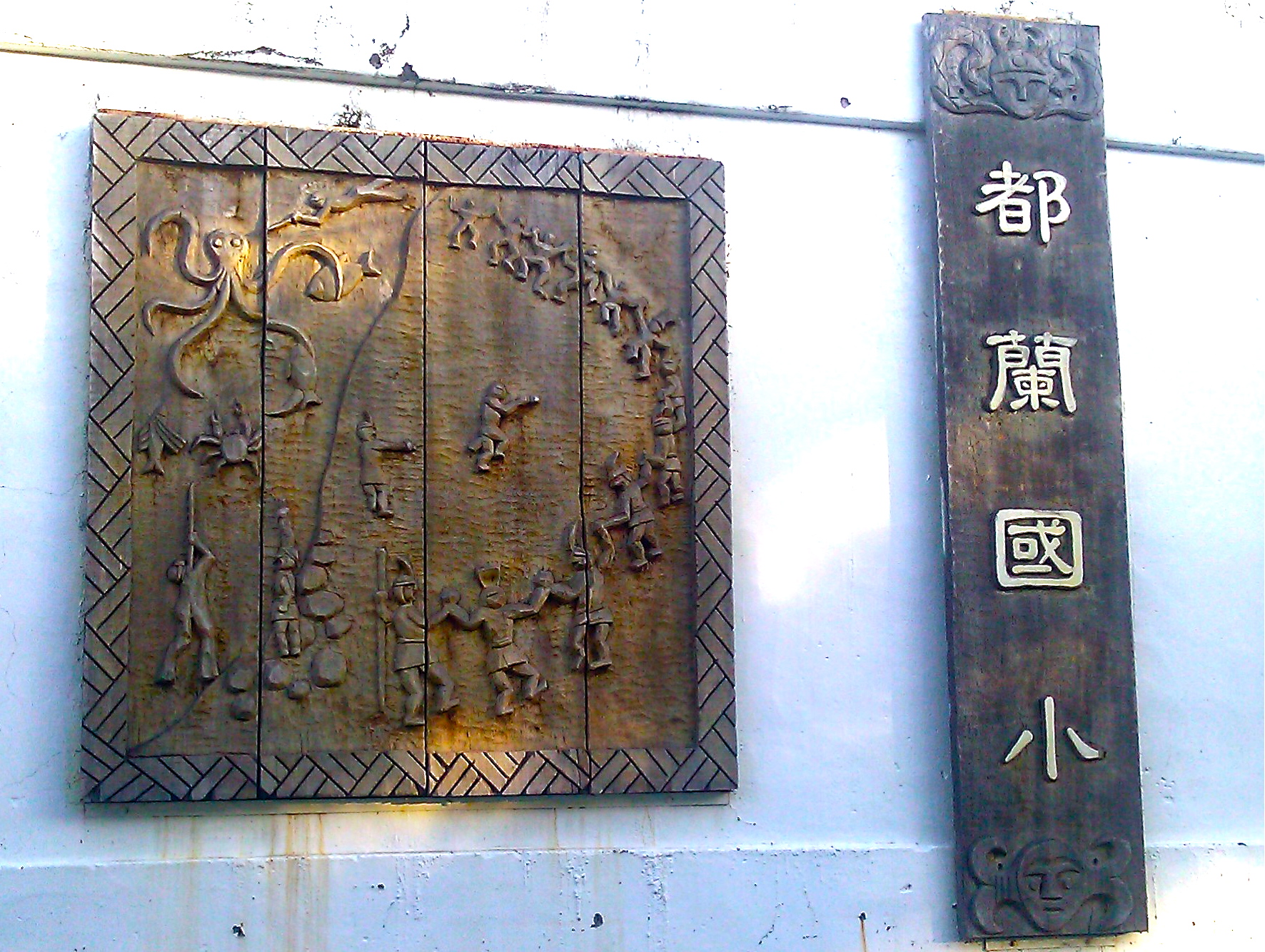 currently, solar panels and indigenous motifs foreground dulan elementary’s commitment to sustainability and local cultural development. and yet, the students at dulan elementary are not all indigenous; half of the student body belongs to hakka, hoklo, or new immigrant ethnic groups. moreover, although the wooden panels at dulan elementary represent local subsistence, mythology, and ritual, woodcarving of this sort was not practiced among a’tolan ‘amis. in fact, the images of coiled snakes and ancestor figures here borrows heavily from the woodcarving tradition of the paiwan group. the novelty and cross-borrowing of techniques and iconography suggests that for the artists (and the school, with whom they are complicit) the carved panels further another sort of scale making project, one in which the local (a’tolan ‘amis mythology, subsistence techniques, and dance gestures) articulate with pan-indigenous representational strategies