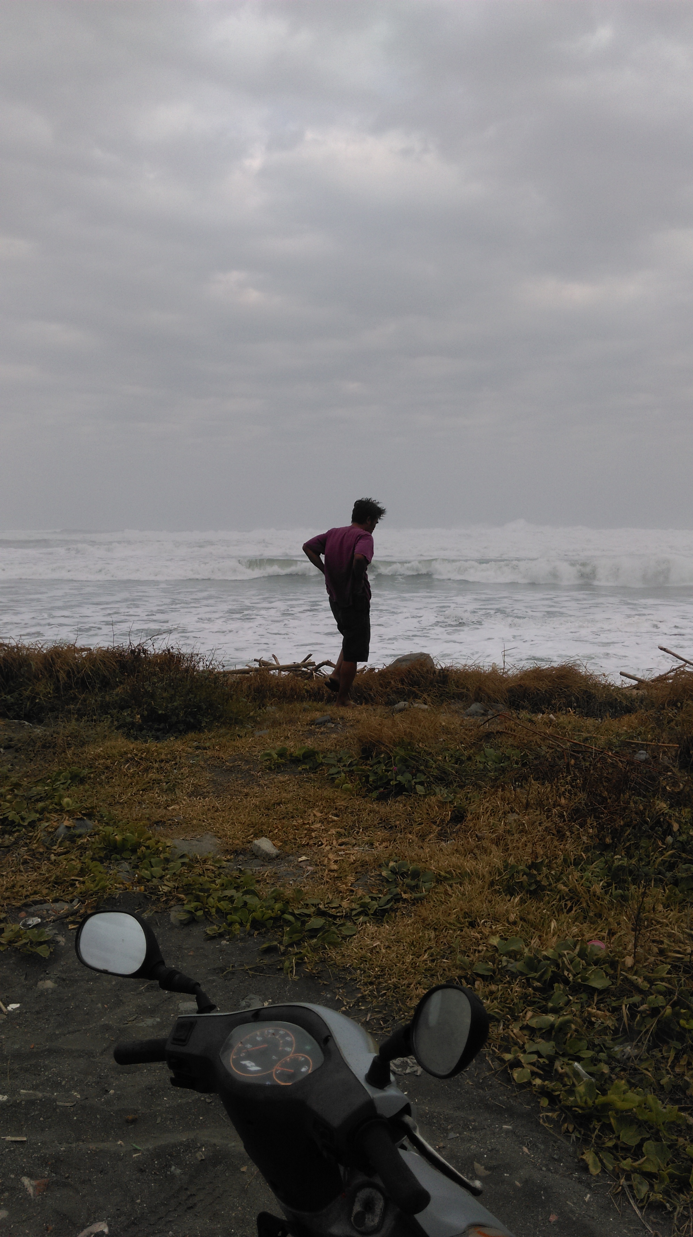 today i visited the ocean to look at the waves with siki sufin, an artist who was born in ‘atolan and who has lived here much of his life, apart from a ten year stint working construction in taipei. for him, typhoons are a mixed blessing: he cannot gather or go spear fishing because of the waves and murky water, but the typhoons do bring his material down from the mountains or up from the ocean. siki carves entirely in scavenged driftwood. in his recent work, he has been struggling, like other artists–hana kliw and yoki pancome to mind, as does rahic talif–to articulate an indigenous perspective on the ocean. the ‘amis are not seafarers, but they have a complicated relationship to the ocean. several gods and goddesses ruled the ocean, one of them, ciDongi, an ancestor of ‘atolan ‘amis. the ocean also appears in erotic songs and playful allegories. it is the source of much of the food ‘amis gather, but also good to think. at the same time, many ‘amis men actively dive and gather for a cash economy that has contributed to the degradation of shellfish and other marine animal stocks. because siki is an activist, his indigenous perspective on the ocean differs from that of many people around the ‘atolan ‘amis community. this contradiction informs the formation of an indigenous environmentalism that differs from both pan-indigenous environmentalism and its close associate consumer environmentalism, which dominate in taiwanese environmentalist circles.