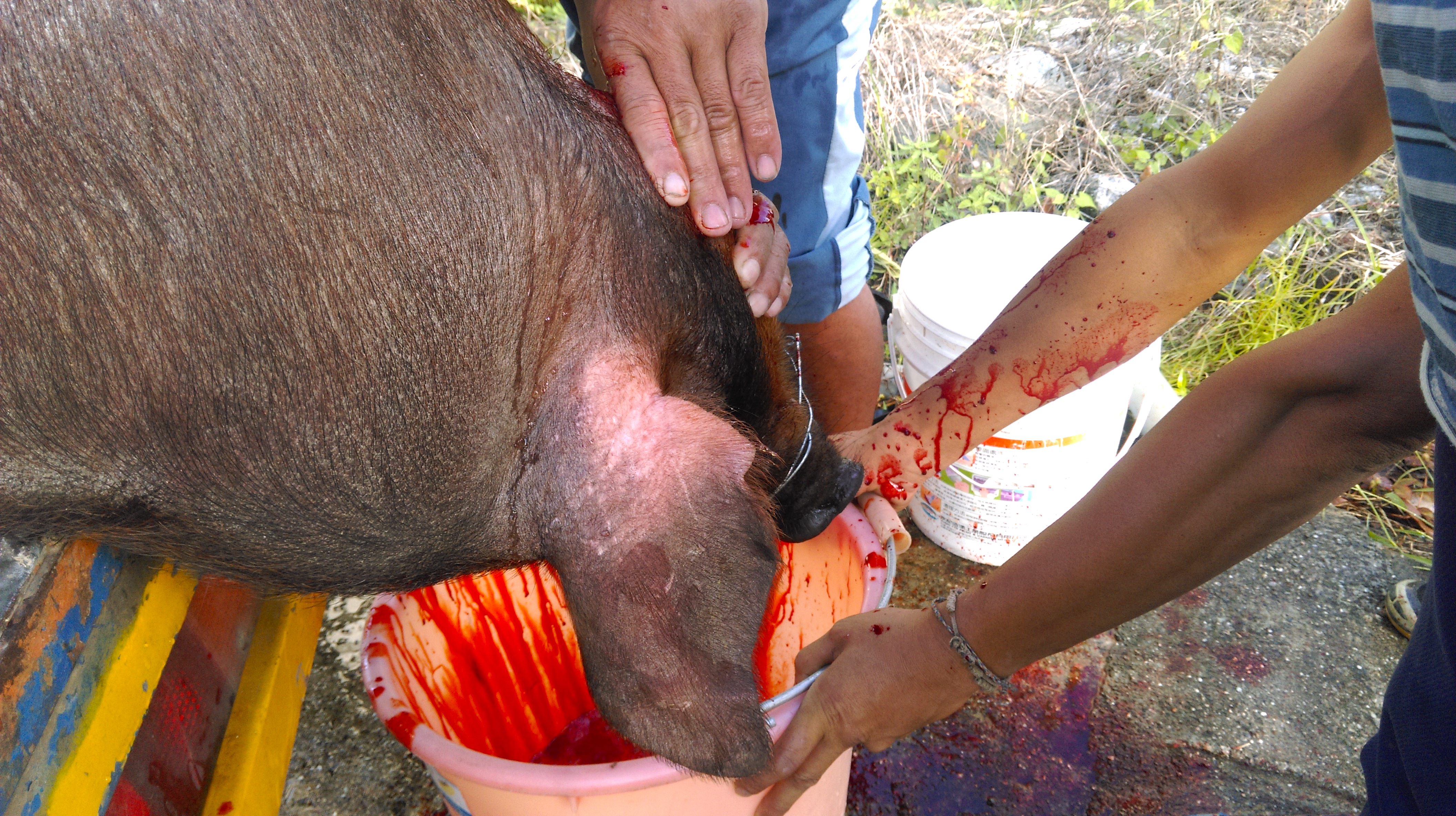 i made associate professor in the spring and was formally promoted in september. people around the community did not exactly expect me to kill a pig, but several people reminded me that i should share my good fortune and happiness with my neighbors, to bring happiness back home. although i had assisted at pig killings in the past, it was my first time to be the principal and thus the person to wield the first knife at such an event. initially, i had been reluctant to slaughter the pig: wouldn’t it be cruel if my technique was insufficient to dispatch the pig rapidly? my kapot insisted, however, that not to stick the pig personally would invalidate the event. it was my rite of passage, and i had to shed the blood