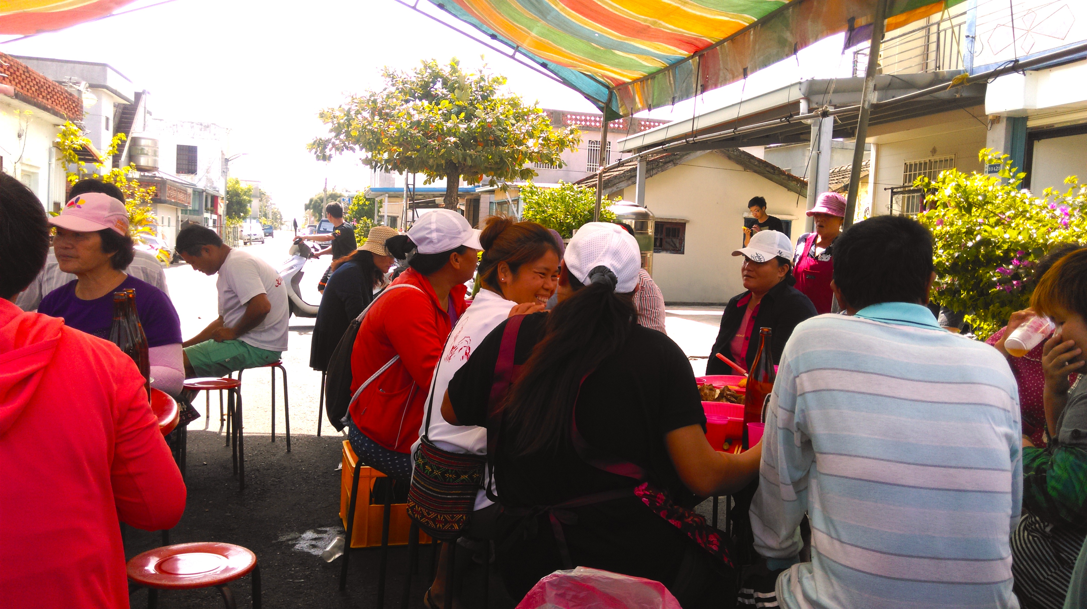 at the banquet, a spokesperson or master of ceremonies from the kapot will ask everyone to eat and direct the sponsor and various guests to make speeches. the round of speeches continue as everyone eats and talks among themselves. eventually, the master of ceremonies will call for songs and play. both the songs and the play surrounding them contain improvised lyrics or phrases to celebrate the event. my ina sang such as song with our kapot to express her happiness–and the happiness of our kapot–on double ten