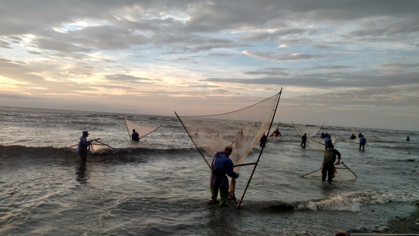The nets, safang, create new forms of relations across groups of people, among species, and with the environment. A former community leader and elder in Laeno, ciKohaw, has told me that even today, no one in the community need fear starvation; as long as one was hardworking and had a net, the river would provide plenty of pudaw for food and cash income. As a youth, he pulled prodigious amounts of pudaw from the river mouth with old style, long nets